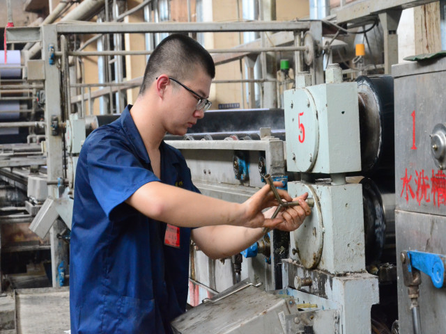 炎炎夏日里,人要時(shí)時(shí)注意防暑降溫,設(shè)備亦然。夏季車間溫度高,濕度重,對設(shè)備的維護(hù)保養(yǎng)要比其它季節(jié)更重要。一上班,面一車間設(shè)備人員李洪凱和師父韓海濤就開始了對車間印染設(shè)備的維護(hù)保養(yǎng)工作。清潔設(shè)備表面、檢查緊固零部件、檢查更換易磨損零件……內(nèi)容看似簡單,但只要把這些簡單的基礎(chǔ)性保養(yǎng)工作做好,就能大大減少設(shè)備的檢修工作量和檢修次數(shù),保障設(shè)備的順利運(yùn)行。