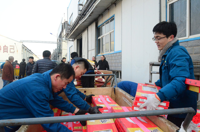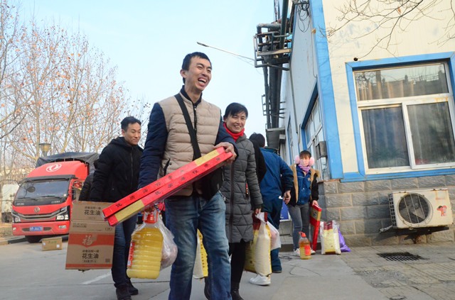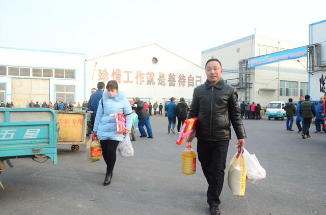 1月21日,公司主廠區(qū)廣場上再現(xiàn)熱烈氣氛,員工們以部門為單位,在這里領(lǐng)取公司為在崗員工和退休職工準(zhǔn)備的豬肉、花生油、大米等“年貨”,以體現(xiàn)對廣大員工建設(shè)企業(yè)、奉獻事業(yè)的慰問之情。