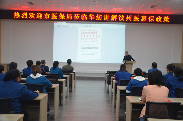 10月14日,中國人民財產保險股份有限公司濱州市分公司副總經理畢德亮,業務經理龔雷業務、呂宏偉等一行來到公司,在2號會議室為員工代表深入講解了濱州醫惠保的相關參保政策。
