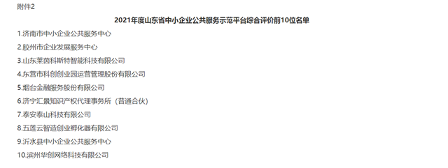 導(dǎo)讀:日前,“2021年的山東省中小企業(yè)公共服務(wù)示范平臺綜合評價”結(jié)果出爐,華創(chuàng)網(wǎng)絡(luò)科技有限公司等10個中小企業(yè)公共服務(wù)示范平臺列綜合評價前10位。