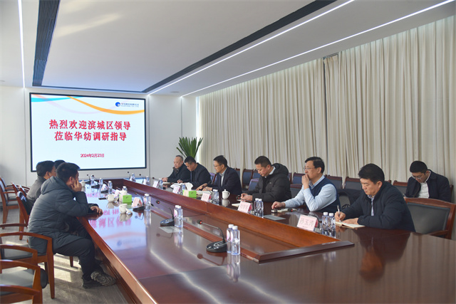 2月23日,濱城區委書記單紀亮一行到公司調研工業經濟運行工作。公司黨委書記、董事長盛守祥,黨委委員、安全副總經理孫中然,黨委委員、人力行政副總經理孫玉濤陪同調研。