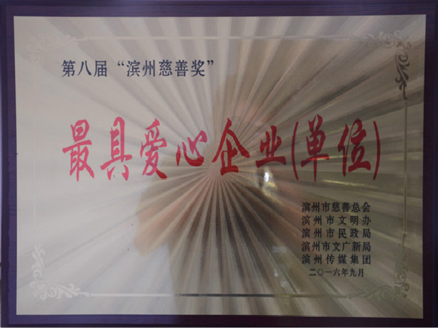 導(dǎo)讀:我公司在第八屆“濱州慈善獎(jiǎng)”評(píng)選表彰活動(dòng)中榮獲“最具愛(ài)心企業(yè)(單位)”稱(chēng)號(hào)。