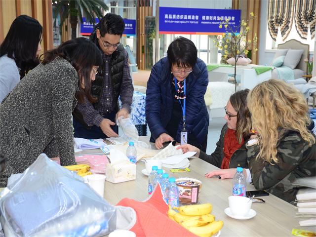 公司黨委書記、董事長王力民陪同客人先后參觀了公司家紡、面料生產車間、服裝車間、研究院、工業園花布車間、家紡成品車間及展廳,并對公司近年來的轉型升級,科技創新,新產品研發等進行了詳細的介紹。家紡分公司李紅經理、商貿公司成汝海經理為客人詳細介紹了相關產品方面的內容,就公司新開發的面料及家紡成品與客人進行了業務洽談,客人表現了很濃厚的興趣,并表示后期將繼續與公司進行深度合作。公司總經理閆英山陪同參觀。