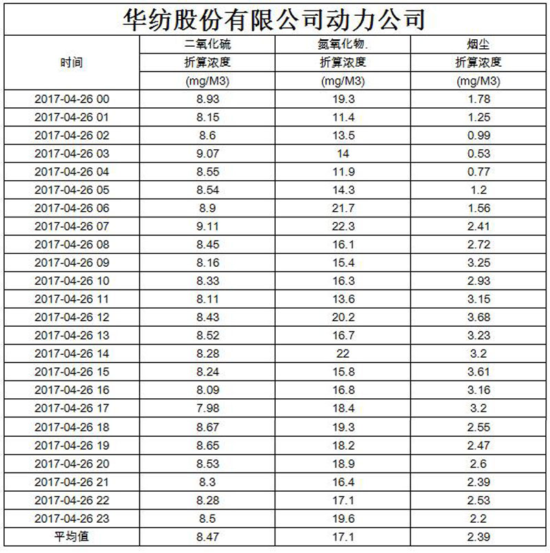 煙氣排放數(shù)據(jù)信息公開2017.4.26數(shù)據(jù)