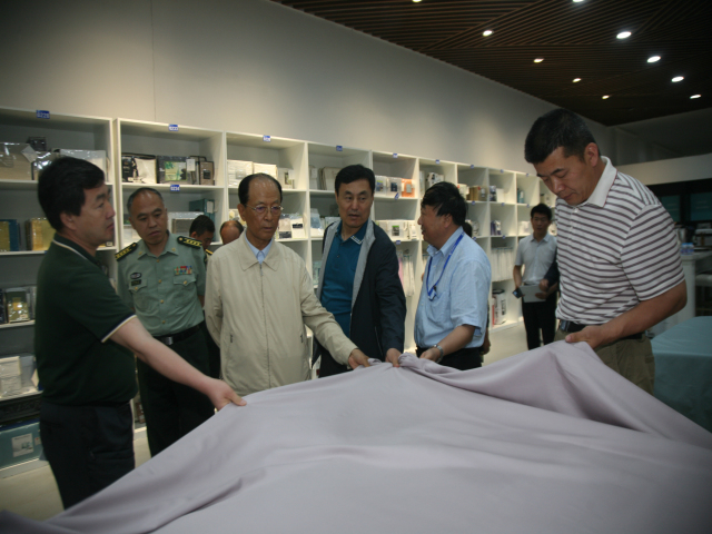 市人大常委會副主任呂德章,市政協副主席吳國瑞、趙建明,濱州軍分區參謀長許增全,公司黨委書記、董事長王力民,副總經理孫中然等,陪同張文臺上將一行參觀了家紡展廳等處所。
