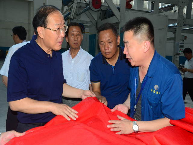 公司總經理閆英山向市人大領導一行介紹了公司在轉型升級、提升品牌建設、拓展國際市場等方面取得的成就,并陪同參觀了公司科技產業園技術研究院、花二車間生產現場,花布產品開發部等場所。