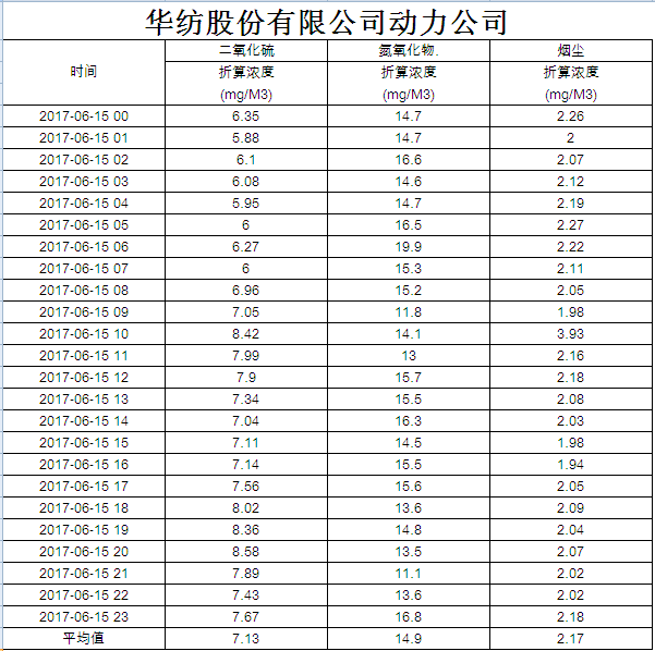 煙氣排放數據信息公開2017.6.15數據