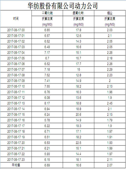 煙氣排放數(shù)據(jù)信息公開2017.6.17數(shù)據(jù)