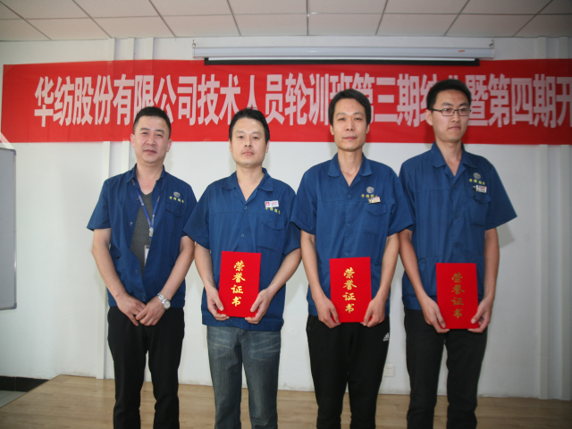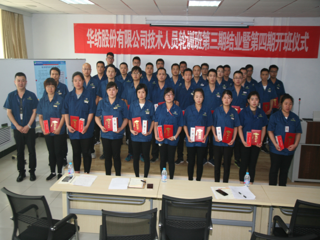 6月18日,公司專業(yè)技術(shù)輪訓(xùn)班第三期結(jié)業(yè)暨第四期開班儀式,在公司工程技術(shù)研究院舉行。儀式上,工程技術(shù)研究院副院長孫紅玉對第三期輪訓(xùn)工作進(jìn)行了總結(jié);總工程師羅維新宣讀了《關(guān)于對染整專業(yè)技術(shù)培訓(xùn)班(第三期)馬士國等35人準(zhǔn)予結(jié)業(yè)的通報》、《關(guān)于對染整專業(yè)技術(shù)培訓(xùn)班(第三期)優(yōu)秀團(tuán)隊、優(yōu)秀學(xué)員的表彰決定》、《關(guān)于對染整專業(yè)技術(shù)培訓(xùn)班(第四期)學(xué)員組成的通報》;總經(jīng)理閆英山為第三期輪訓(xùn)班結(jié)業(yè)學(xué)員頒發(fā)結(jié)業(yè)證書,為優(yōu)秀團(tuán)隊花二車間小組及馬士國、李義、陳愛民等三名優(yōu)秀學(xué)員頒發(fā)獎狀證書,為第四期學(xué)員頒發(fā)了專業(yè)學(xué)習(xí)書籍;王金亮、馬士國、商曉峰分別代表往期學(xué)員、本期學(xué)員和下期學(xué)員發(fā)言;公司黨委書記、董事長王力民圍繞堅持“求學(xué)、求知、求真、求實”的作風(fēng)信條做了重要講話。
