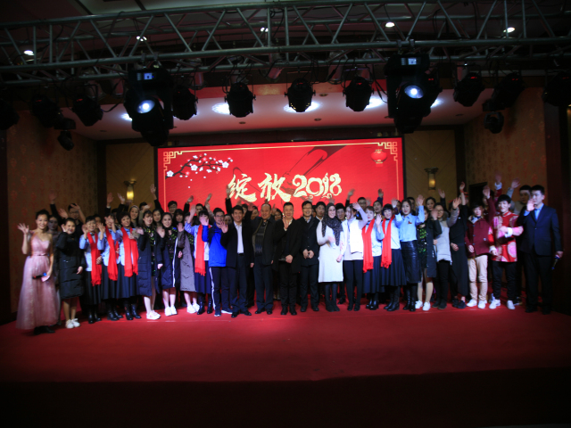 晚會結束后,公司總經理閆英山等公司領導與參加演出的員工合影;來自突尼斯的天津工業(yè)大學見習生琺嘟娜受邀登臺,參加了合影。