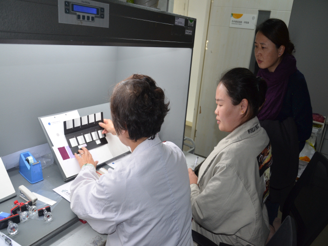 面料公司經理王超、家紡公司經理成汝海、營銷管理部主任楊霞等,與天祥集團相關管理者及專業技術人員,圍繞檢測服務、標準統一等內容進行了座談交流,公司檢測中心檢測員畢雨和天祥集團專業人員在現場進行了目光比對,隨后,一起參觀了天祥集團新實驗室。天祥集團紡織品類總經理龔澎,天祥集團相關專家參與座談交流活動。此次活動作為雙方年度系列交流活動之一,體現出雙方在產品檢測、文化交流等方面緊密合作的再推進,對促進雙方共同發展具有積極的推動作用。