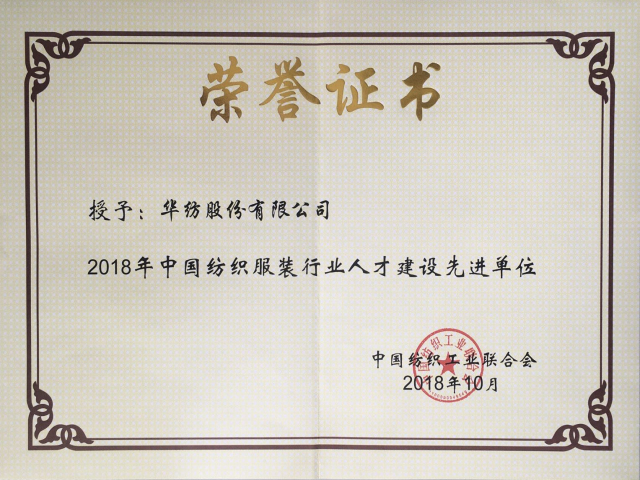 來自不同領(lǐng)域的專家學(xué)者圍繞紡織服裝人才建設(shè)進(jìn)行了發(fā)言,同時(shí),為進(jìn)一步推進(jìn)紡織行業(yè)“知識更新工程”人才建設(shè)培訓(xùn)工作,加強(qiáng)紡織服裝人才隊(duì)伍建設(shè),促進(jìn)行業(yè)轉(zhuǎn)型升級發(fā)展,大會還對2018年中國紡織行業(yè)人才建設(shè)先進(jìn)單位個人進(jìn)行了表彰。公司憑借在人才建設(shè)上取得的成績,被授予“2018年中國紡織服裝行業(yè)人才建設(shè)先進(jìn)單位”稱號,副總經(jīng)理盛守祥獲得“2018年中國紡織服裝行業(yè)人才建設(shè)先進(jìn)個人”稱號。