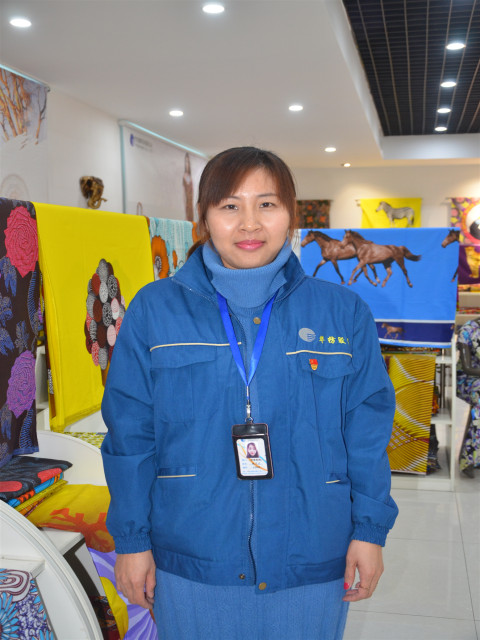 再有不到兩年,花布設計開發部主管趙蘭蘭進入公司就滿20年了,近年來,她帶領花布產品設計開發團隊銳意進取,為保證市場和服務客戶做出突出貢獻。可以說,每天與色彩斑斕的圖案花型打交道,并讓這些精美的圖案花型成為“中國智造”的一部分閃亮非洲,是趙蘭蘭內心的一種快樂。趙蘭蘭說:“我們花布產品設計制版工作,是公司花布從市場開發到營銷生產的重要組成部分,講求不斷突破創新,精益生產。感謝公司給予我這么高的榮譽,感謝花布的領導和同事們給予我工作的支持和幫助,在以后的日子里,我將以身作則,踐行模范工匠精神,帶領我的團隊,不斷學習,再創佳績,匯報公司。